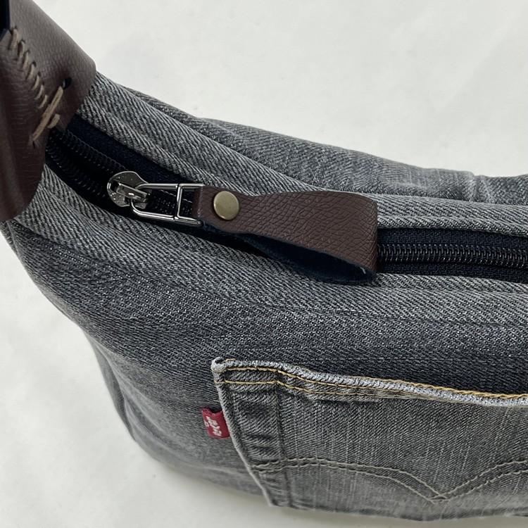 빈티지 데님과 천연 통가죽이 매치된