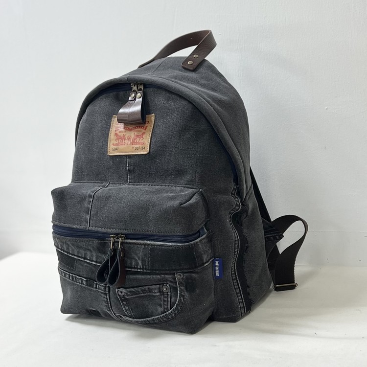 빈티지 데님을 활용한 친환경 백팩으로,