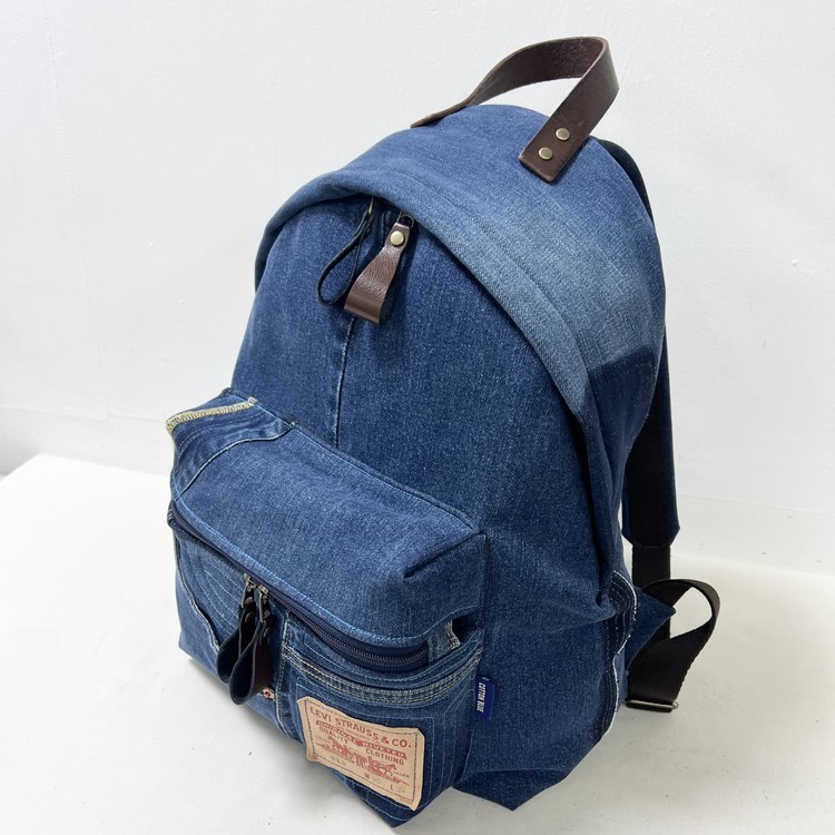 빈티지 데님을 활용한 친환경 백팩으로,