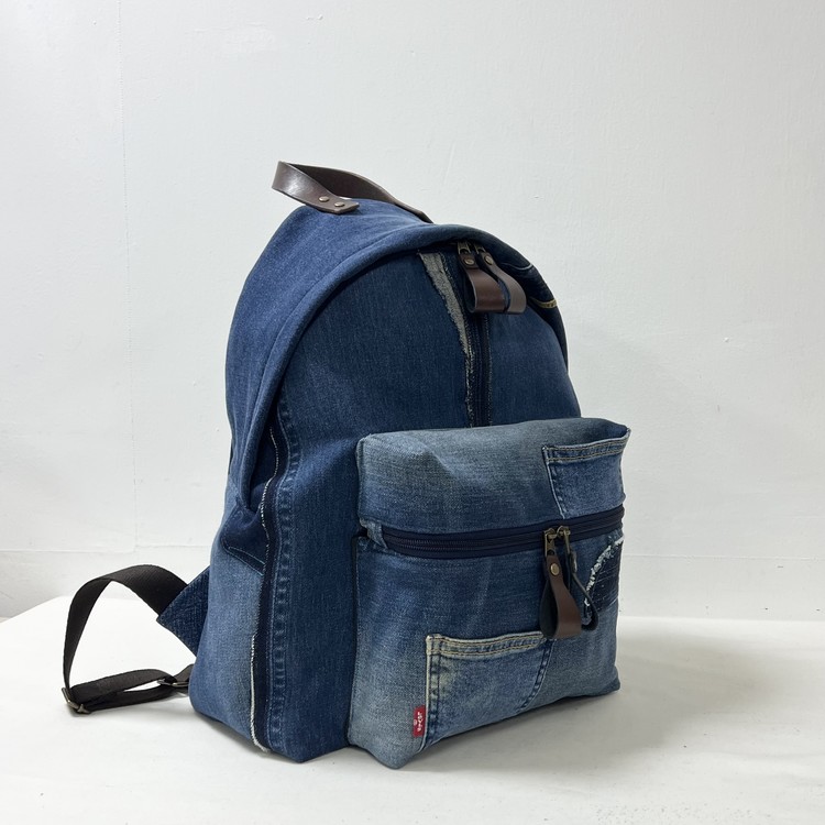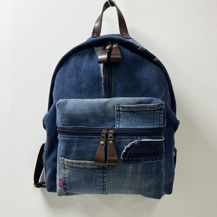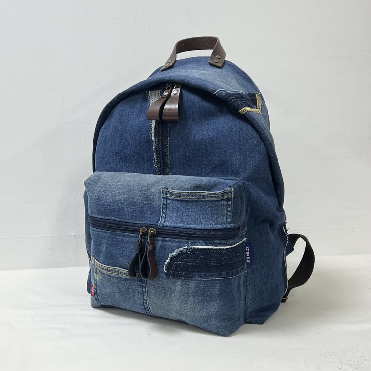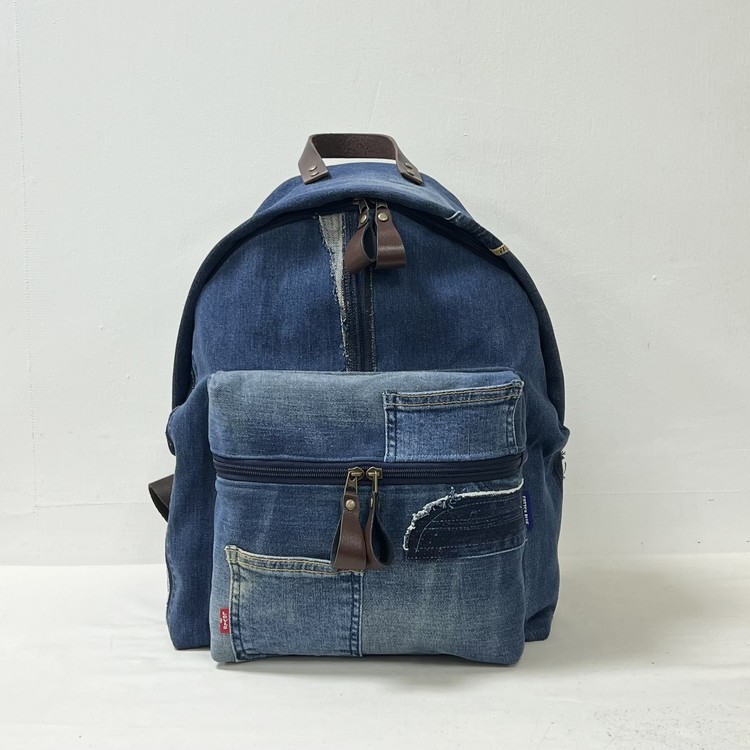 빈티지 데님을 활용한 친환경 백팩으로,