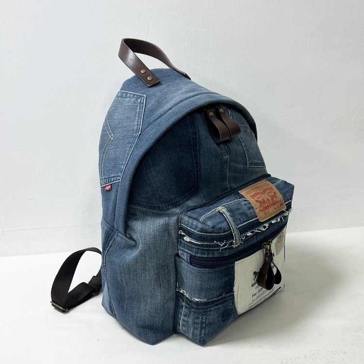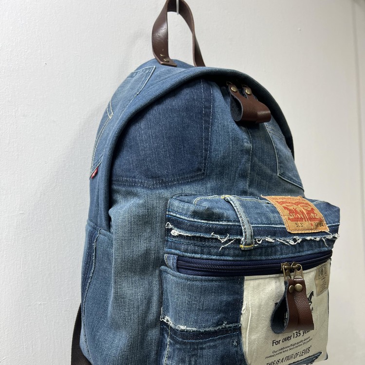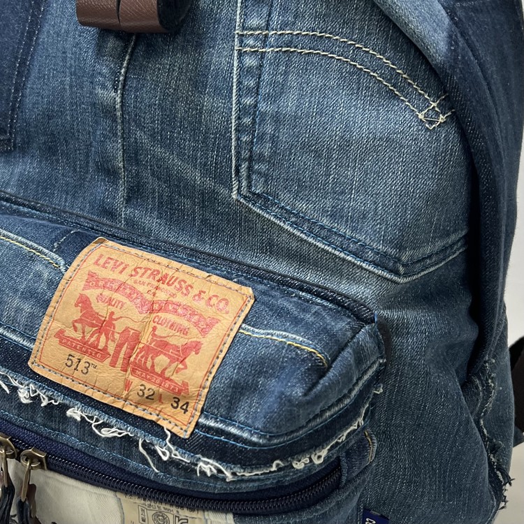 빈티지 데님을 활용한 친환경 백팩으로,
